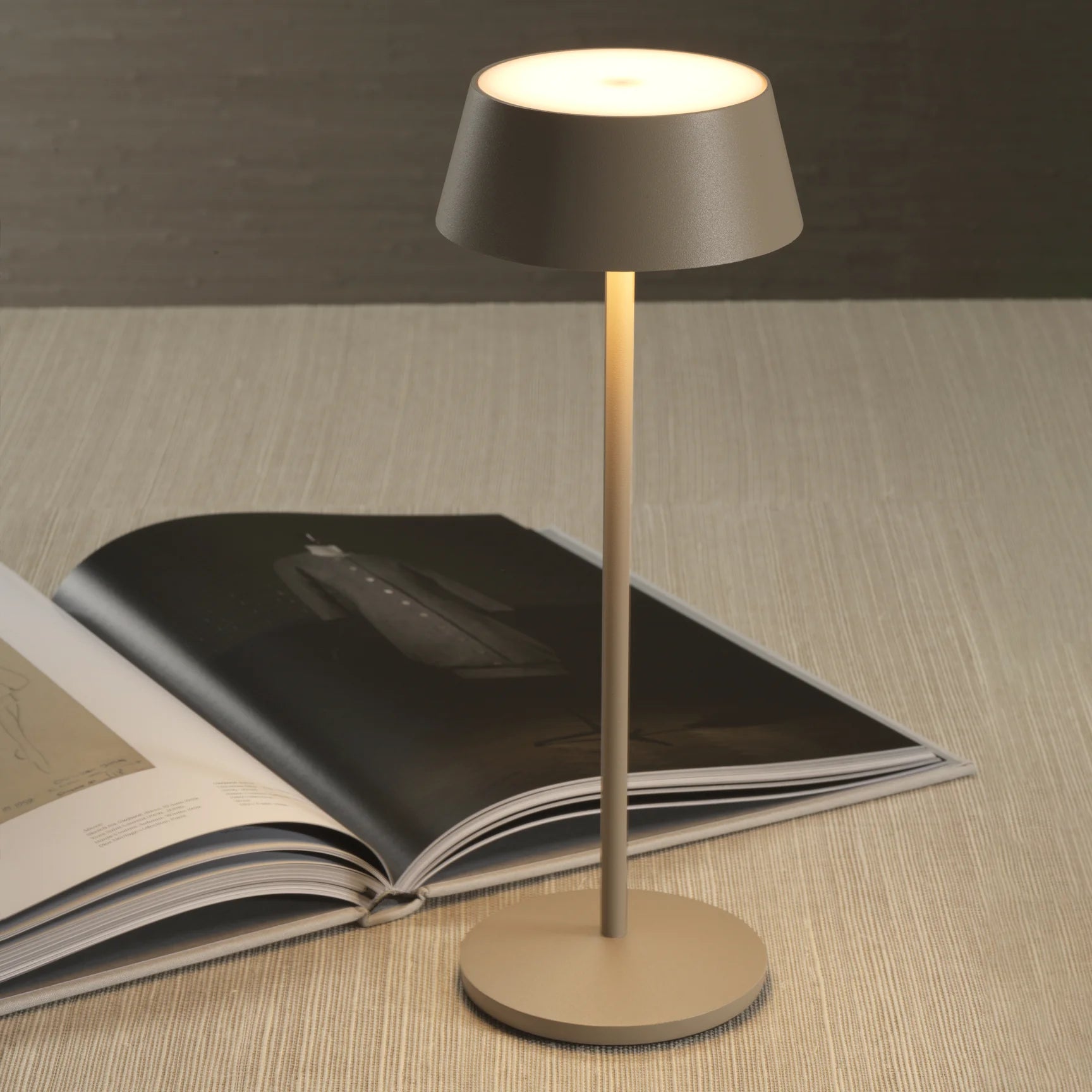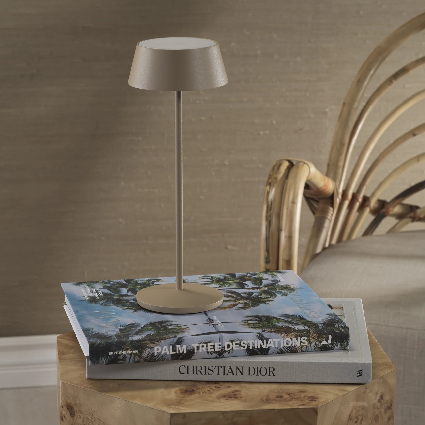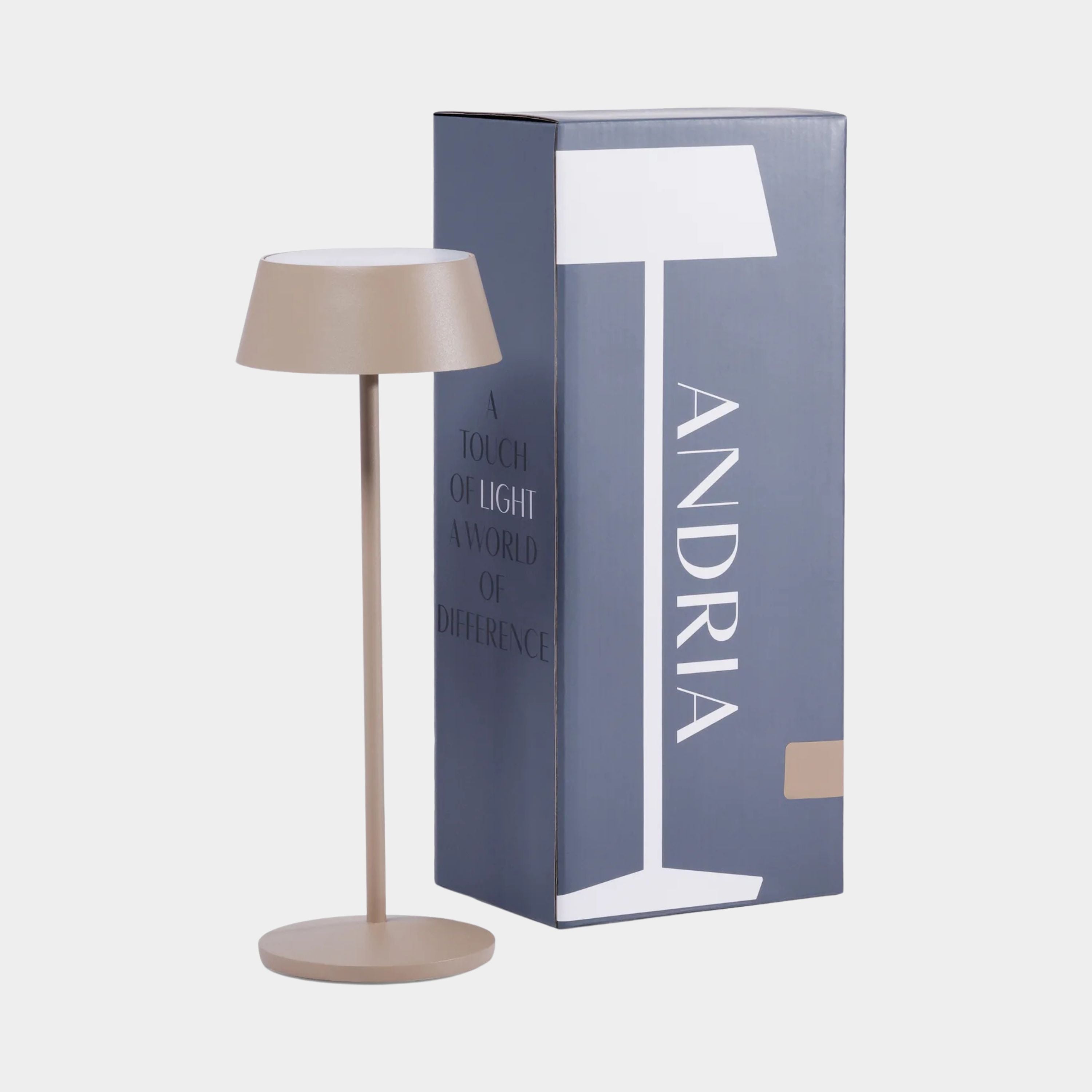 Slim, sculptural, and surprisingly versatile. The Andria Rechargeable Table Light is designed for effortless illumination—no cords, no fuss. A matte metal finish adds a refined edge, while the compact size (4.25" x 11.75") makes it ideal for layering on a nightstand, side table, or alfresco setting. Tap to dim and set the mood.