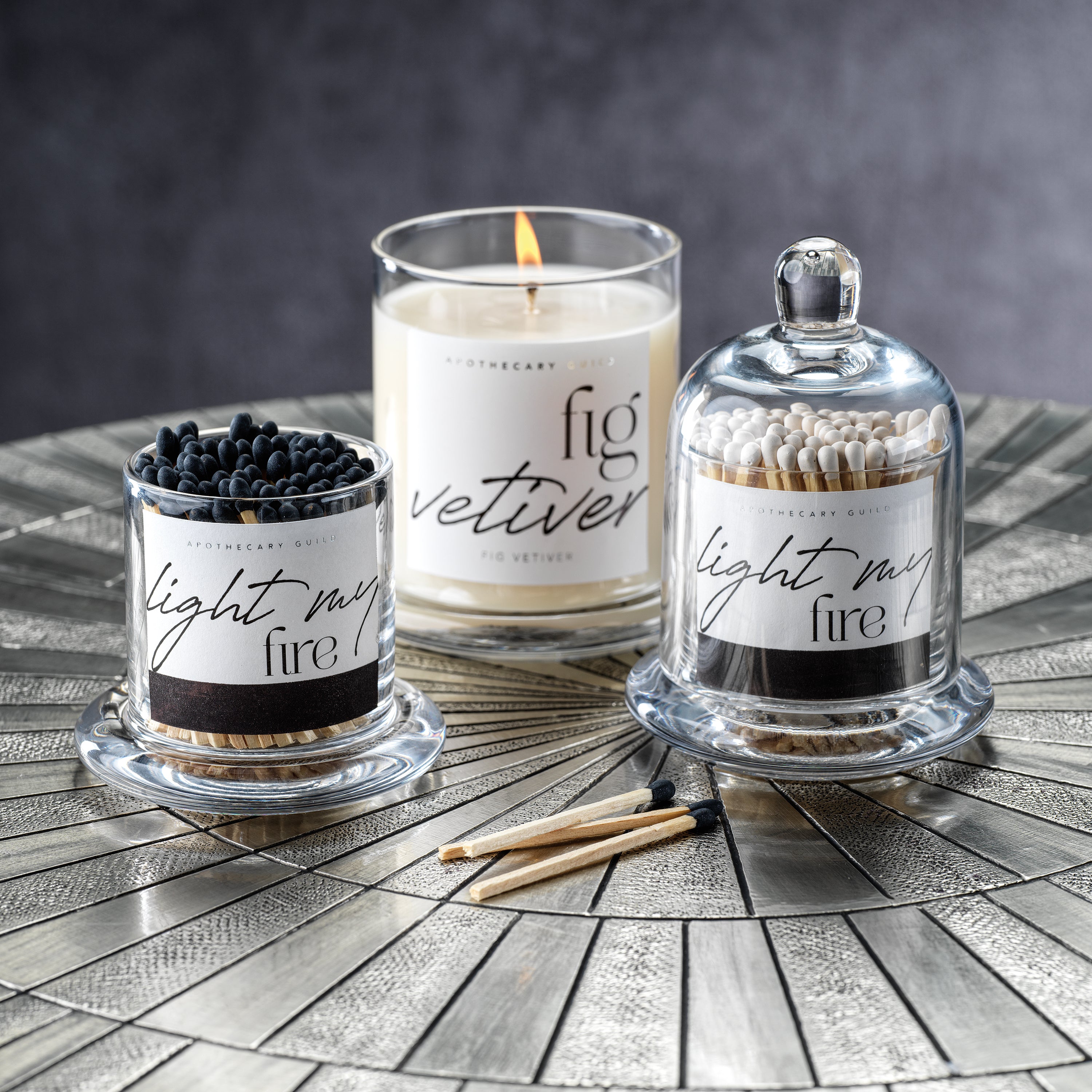 This elegant glass dome jar holds approximately 150 matchsticks, designed to complement any space with a touch of modern sophistication. Chic and functional, it’s perfect for rooms throughout your home—whether your bedroom, living room, or bathroom. The matches can be struck directly on the bottle, and once emptied, the vessel can be repurposed as a terrarium or display cloche.