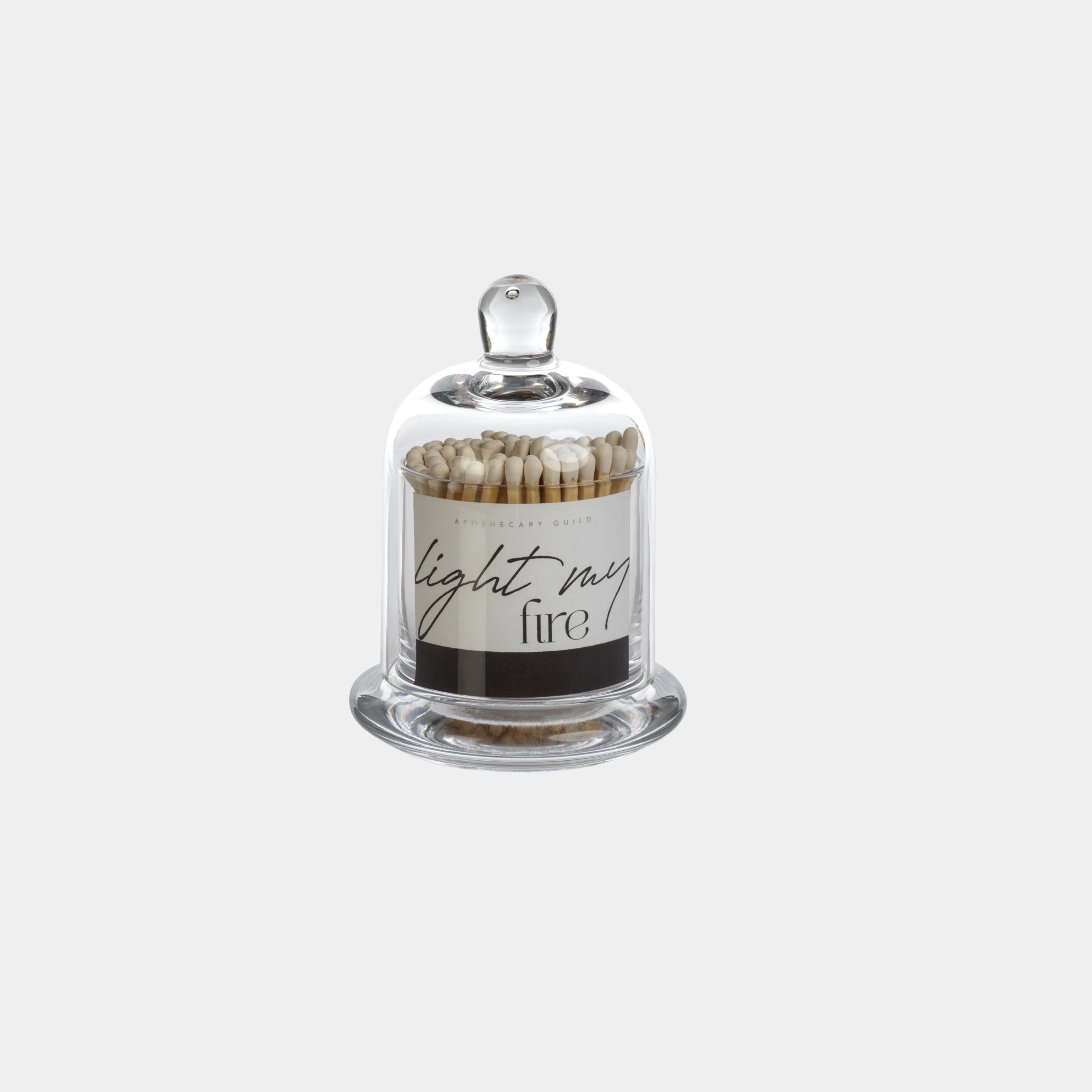 This elegant glass dome jar holds approximately 150 matchsticks, designed to complement any space with a touch of modern sophistication. Chic and functional, it’s perfect for rooms throughout your home—whether your bedroom, living room, or bathroom. The matches can be struck directly on the bottle, and once emptied, the vessel can be repurposed as a terrarium or display cloche.
