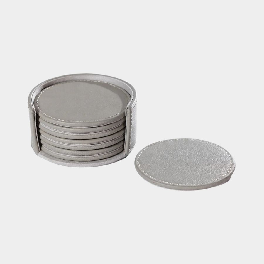 Ruvo 8-Piece Set Leather Coasters in Gray