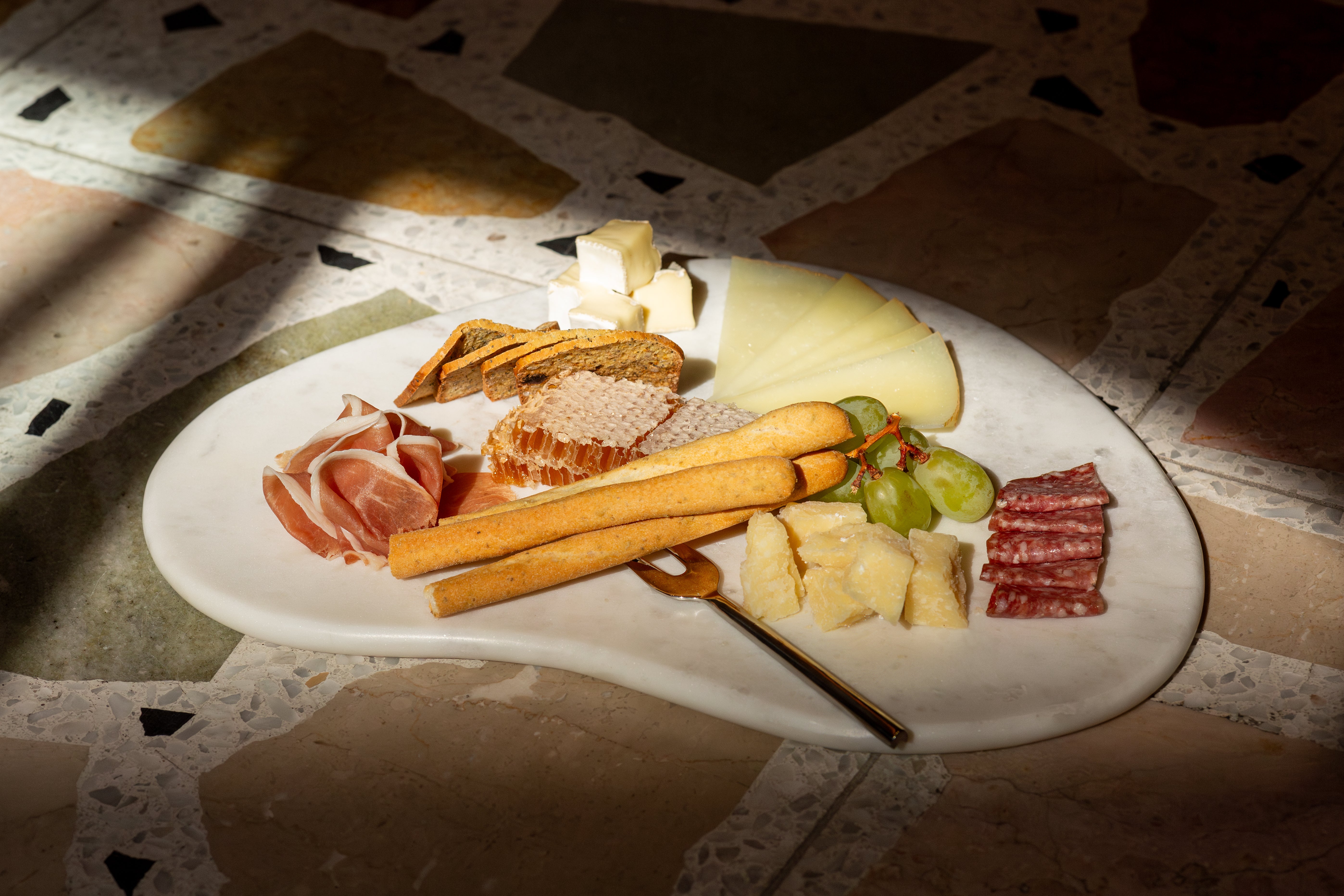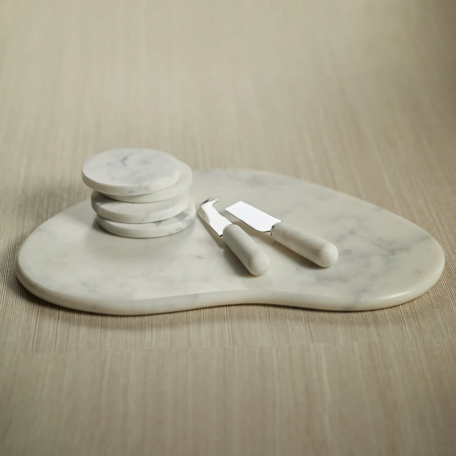 Crafted from smooth white marble, the Soho Curved Marble Cheese & Charcuterie Board brings understated luxury to your table. Its fluid, organic shape creates a striking surface for presenting your finest selection of cheeses, charcuterie, or hors d'oeuvres. Whether you’re hosting an intimate gathering or simply elevating your daily routine, the cool, polished marble offers timeless sophistication and durability, while its curved edges introduce a subtle sculptural quality. Pair it with sleek silver cutlery or artisan serving ware for a dining experience that impresses without trying too hard.