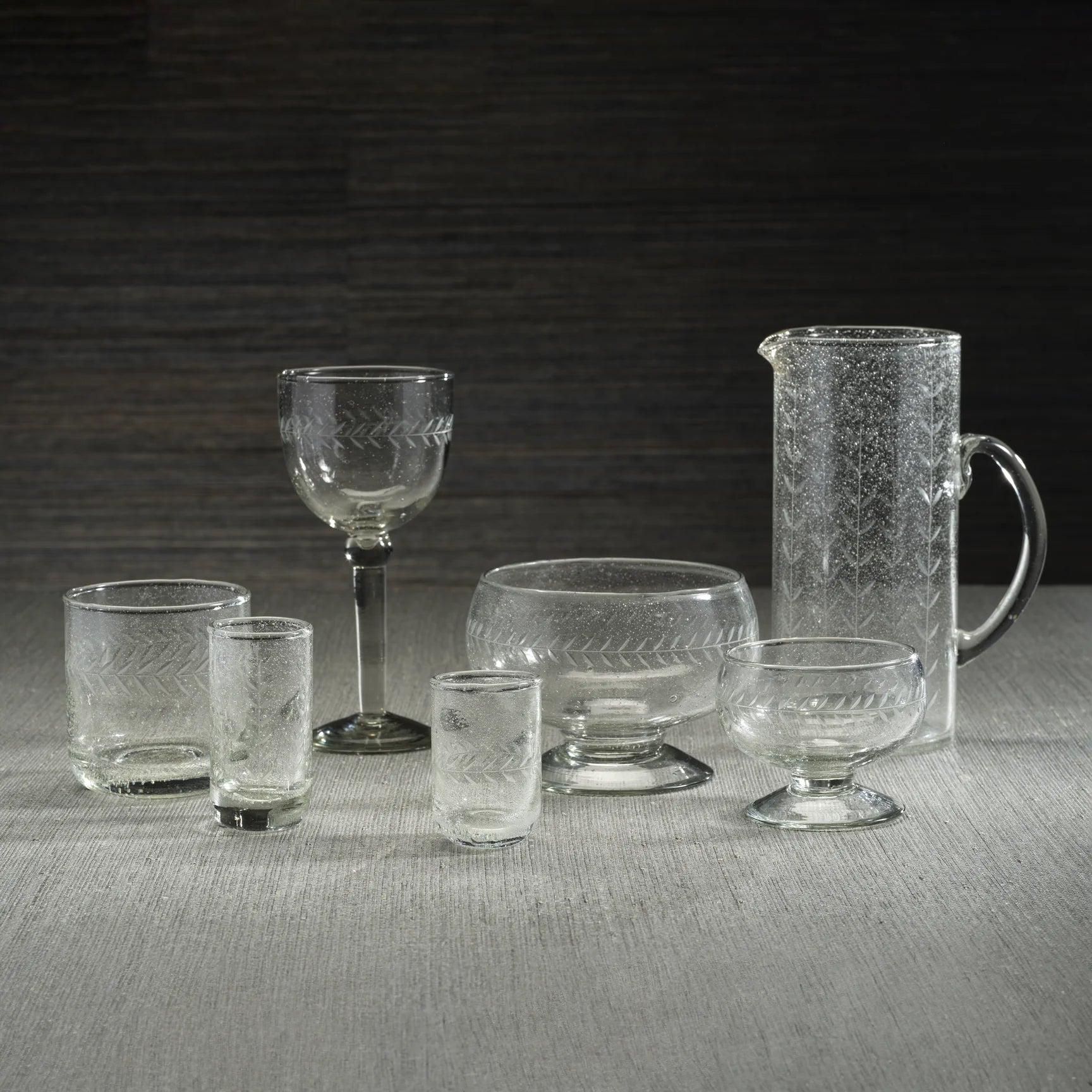 A true work of art, this Tuscan Handmade Etched Glass Pitcher combines sustainable craftsmanship with timeless elegance. Made from recycled bubble glass, it features intricate hand-cut leaf etching for a vintage-inspired look. Ideal for serving water, juice, or infused beverages, this pitcher is as functional as it is decorative.
