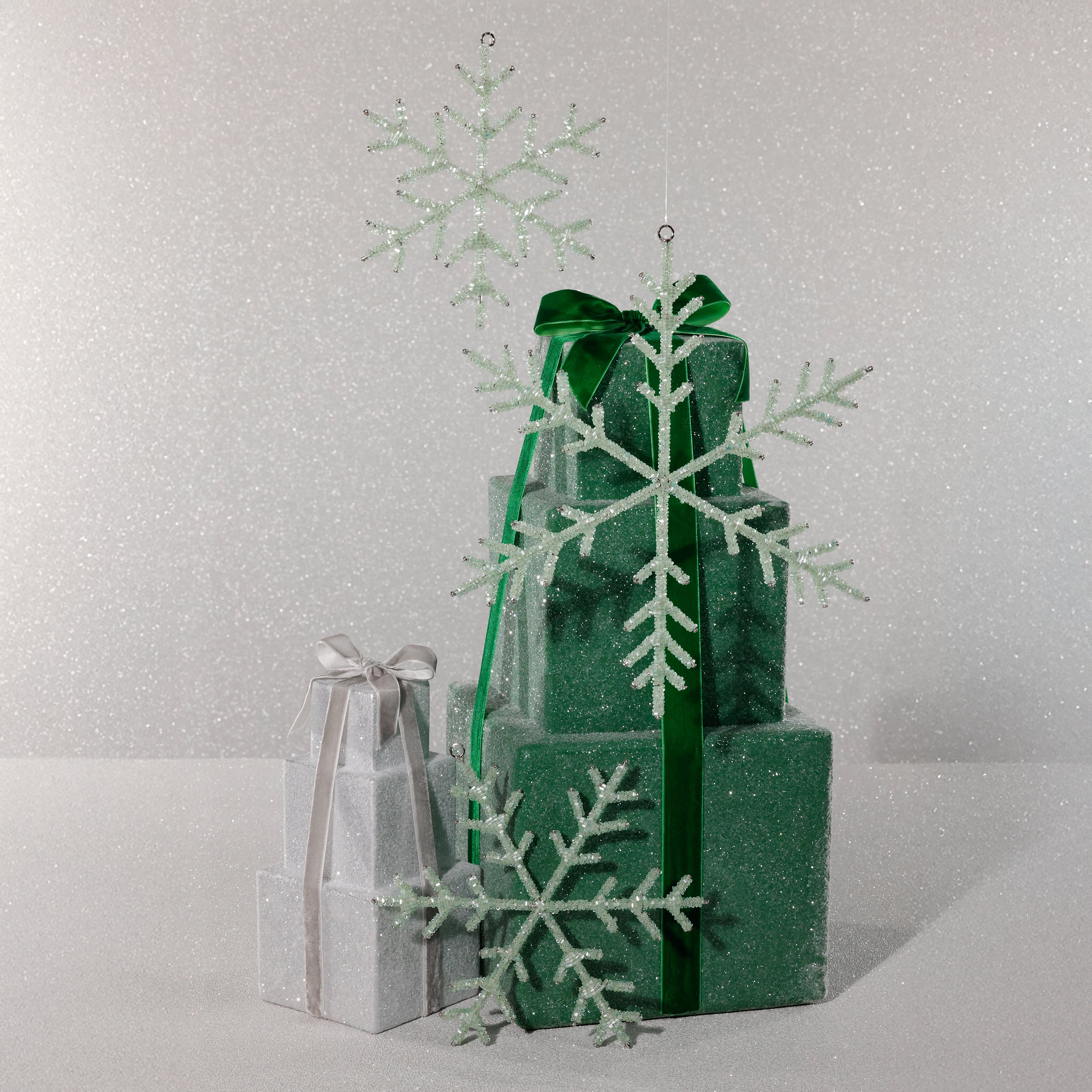 Beaded Snowflake Ornament - Green - 10 in, (Set of 12)