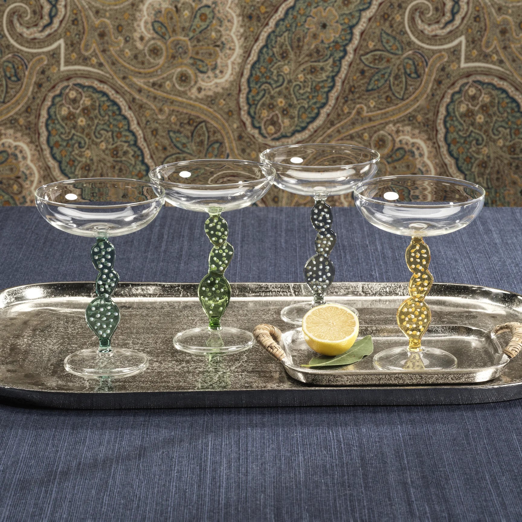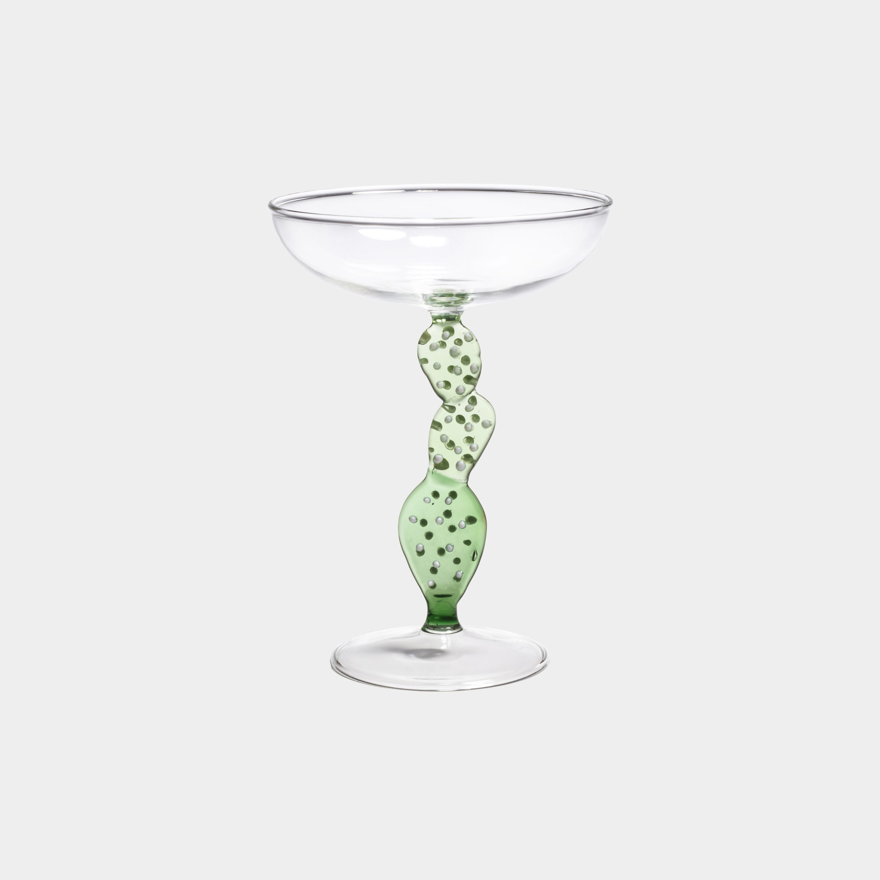 Elevate your cocktail experience with the Climbing Cacti Tequila Cocktail Glasses. Featuring a classic clear-finish coupe bowl, these glasses stand out with a cactus-inspired stem in vibrant hues, accented by delicate white dot detailing. The clear, flat round base ensures stability, making them perfect for serving tequila-based cocktails, margaritas, or your favorite mixed drinks. A stylish fusion of modern elegance and Southwestern charm, these glasses bring a unique and playful touch to any barware collection.