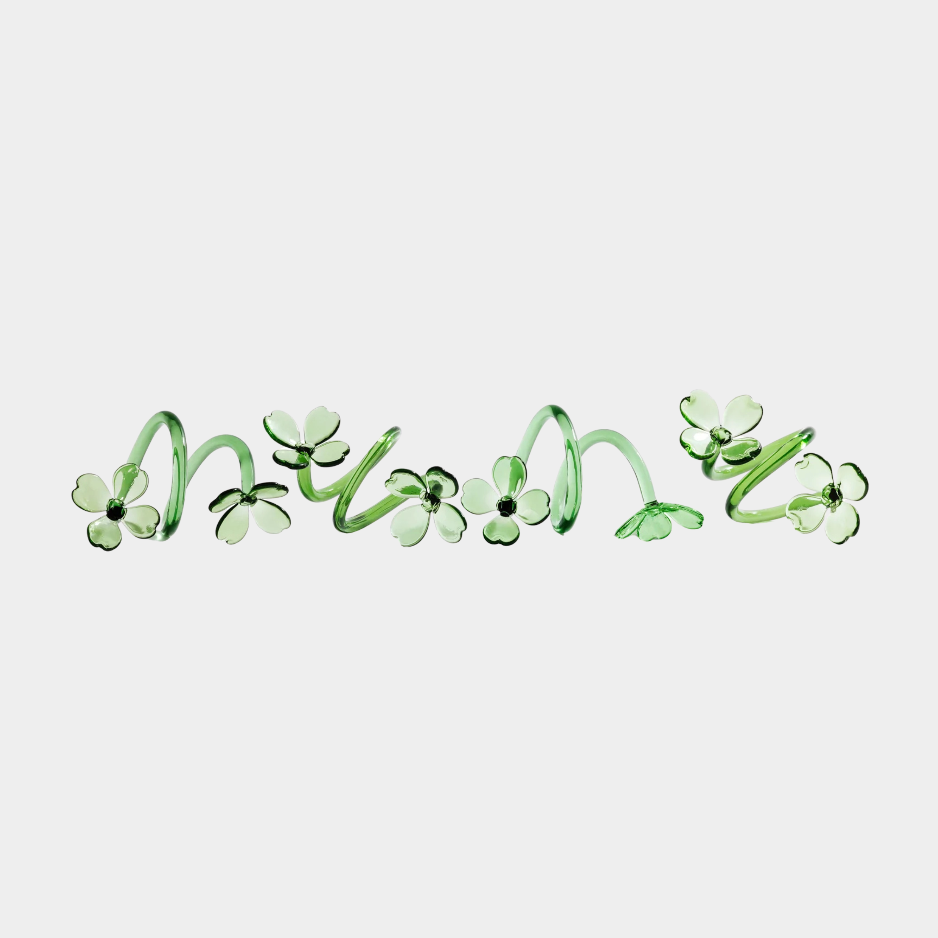 PRE-ORDER Botanica Glass Flower Napkin Rings (Set of 4 ) in Green