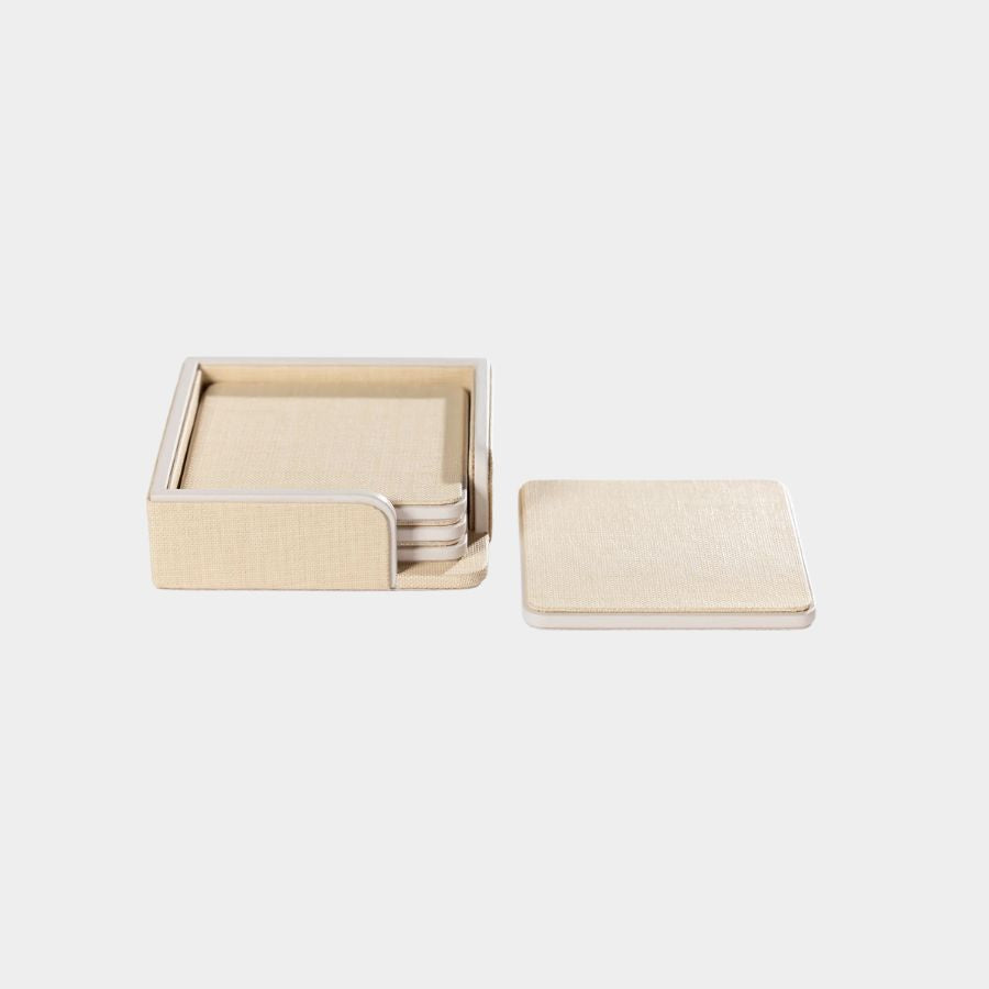 Nappa Leather & Raffia 4-Piece Coaster Set on Tray